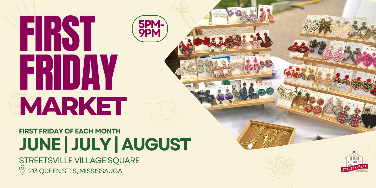 Join us in the heart of Streetsville this summer for First Fridays in The ’Ville. On the first Friday of June, July, and August, the Streetsville Village Square comes alive with an evening market filled with local vendors, good food, and live music.