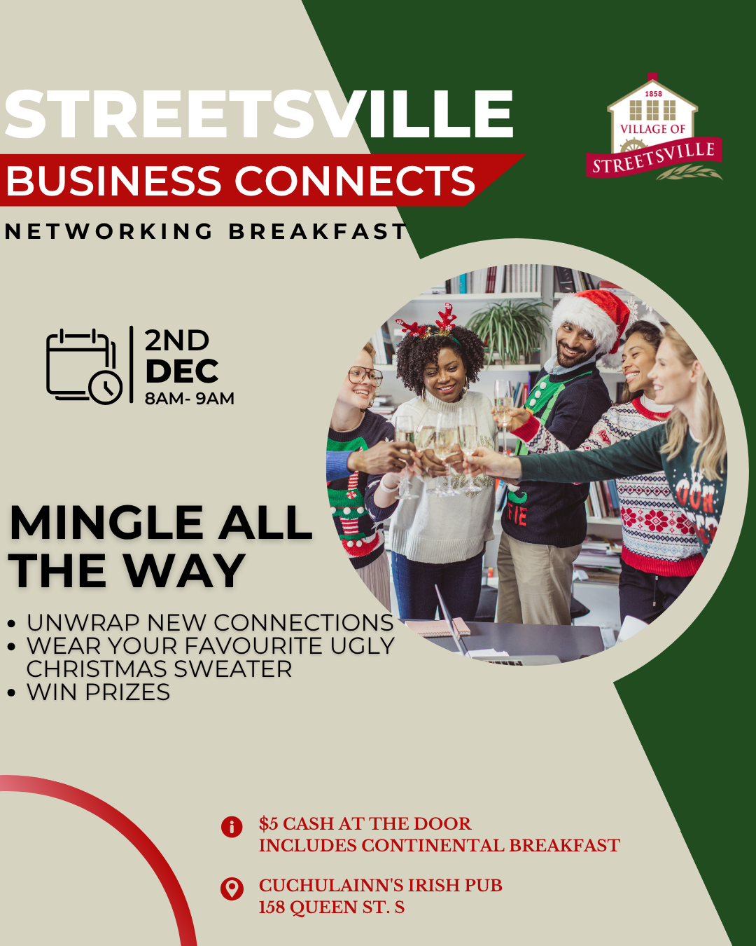 Join us on Tuesday, December 2 for one last morning of networking, prizes, and, of course, an ugly sweater contest. Best sweater wins a prize so shine your brightest 🎄